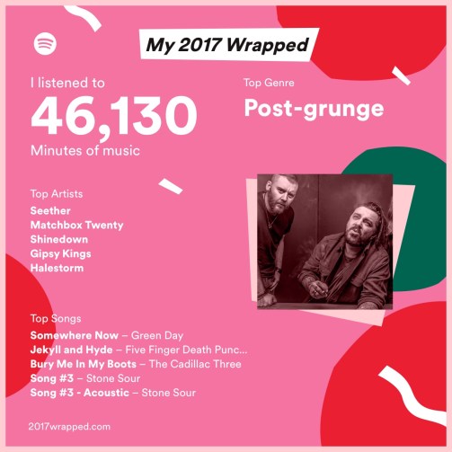 One of our traditions over the last couple of years has been Spotify – Year in music, or ‘Wrapped’ as its now called. Here is how 2017 looked.